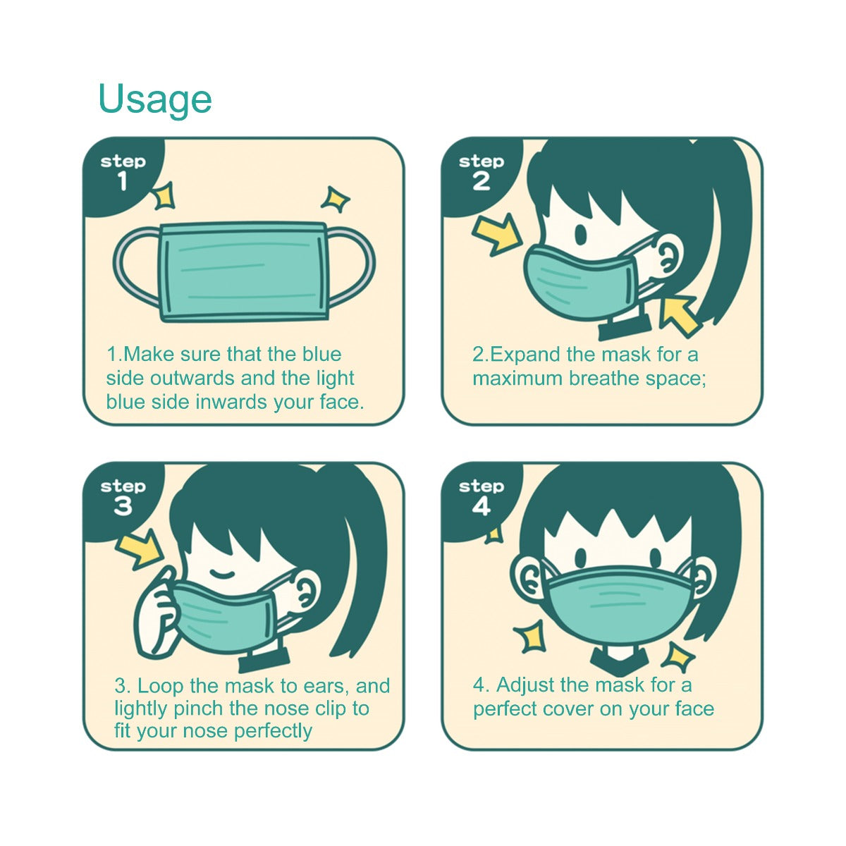 50 片装三层一次性口罩(带弹性耳带)
