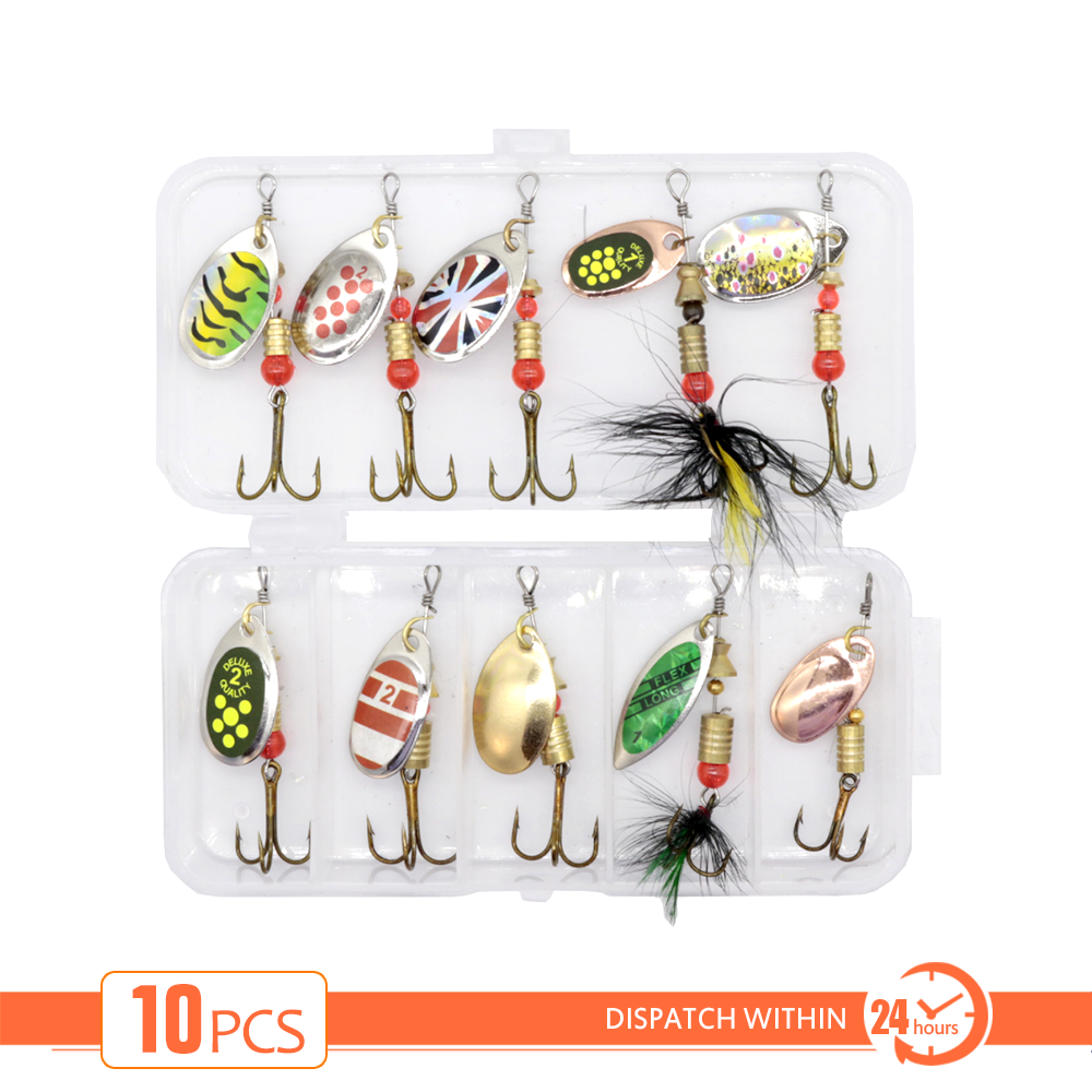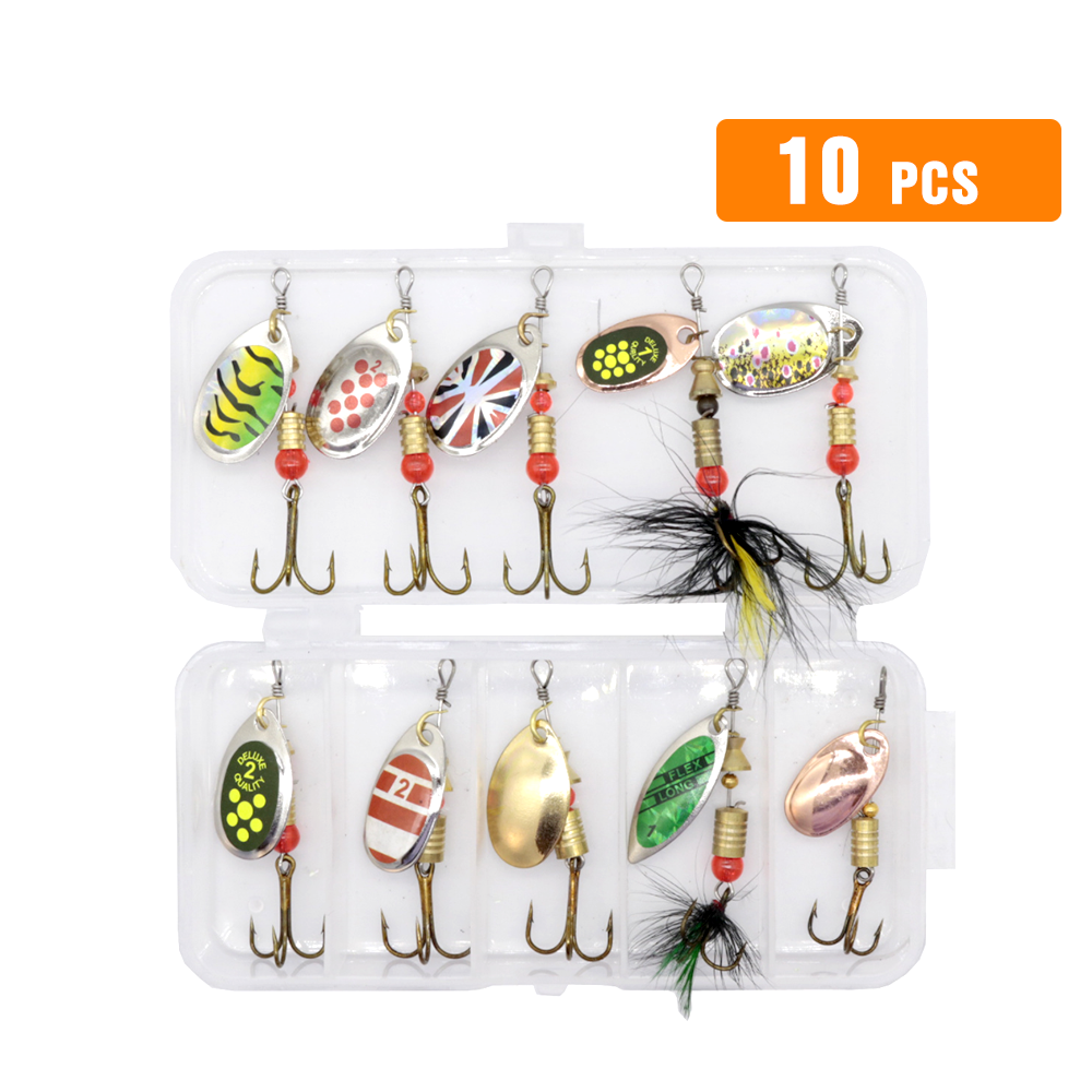 10 件装金属旋转鱼饵勺形切片旋转钓具钩饵铸造