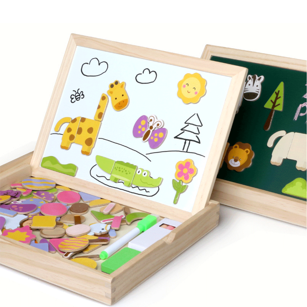 木制磁铁白板多色拼图儿童玩具游戏动物